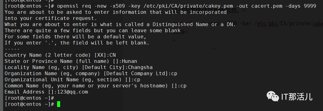 openssl req -new -x509 -key etc/pki/CA/private/cakey.pem -out /etc/pki/CA cacert.pem -days 9999