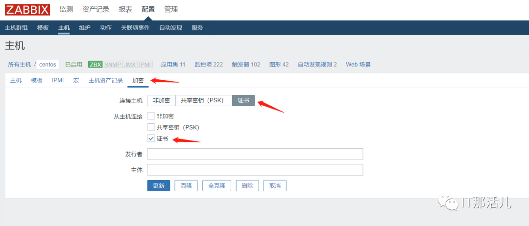 3. 重启zabbix-server和zabbix-agent,在前端配置证书模式