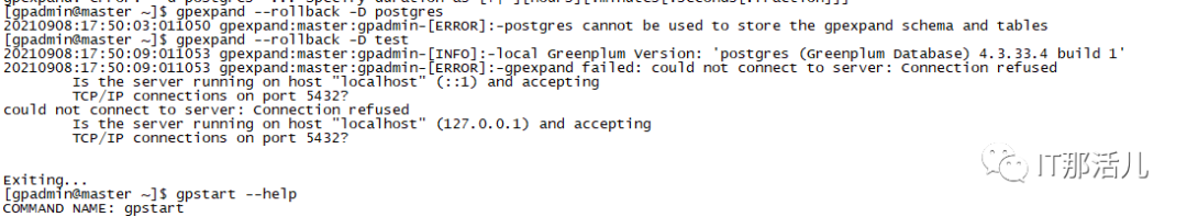 将GP集群,启动到master状态 gpstart -m; 执行gpextend –rollback; 执行 gpstart -a。