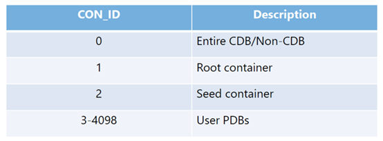 CON_ID PDB_ID PDB_NAME DBID STATUS