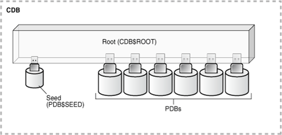 CDB seed为PDB的种子,其中提供了数据文件,在CDB环境中被标识为PDB$SEED,是创建新的PDB的模板,你可以连接PDB$SEED,但是不能执行任何事物,因为PDB$SEED是只读的,不可进行修改。 - PDBs