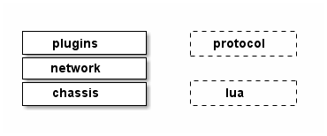 底架层负责载入网络层和插件层,网络层在底架层之上,插件层在网络层之上,协议库和lua接口在旁边, 会被网络层和插件层调用。