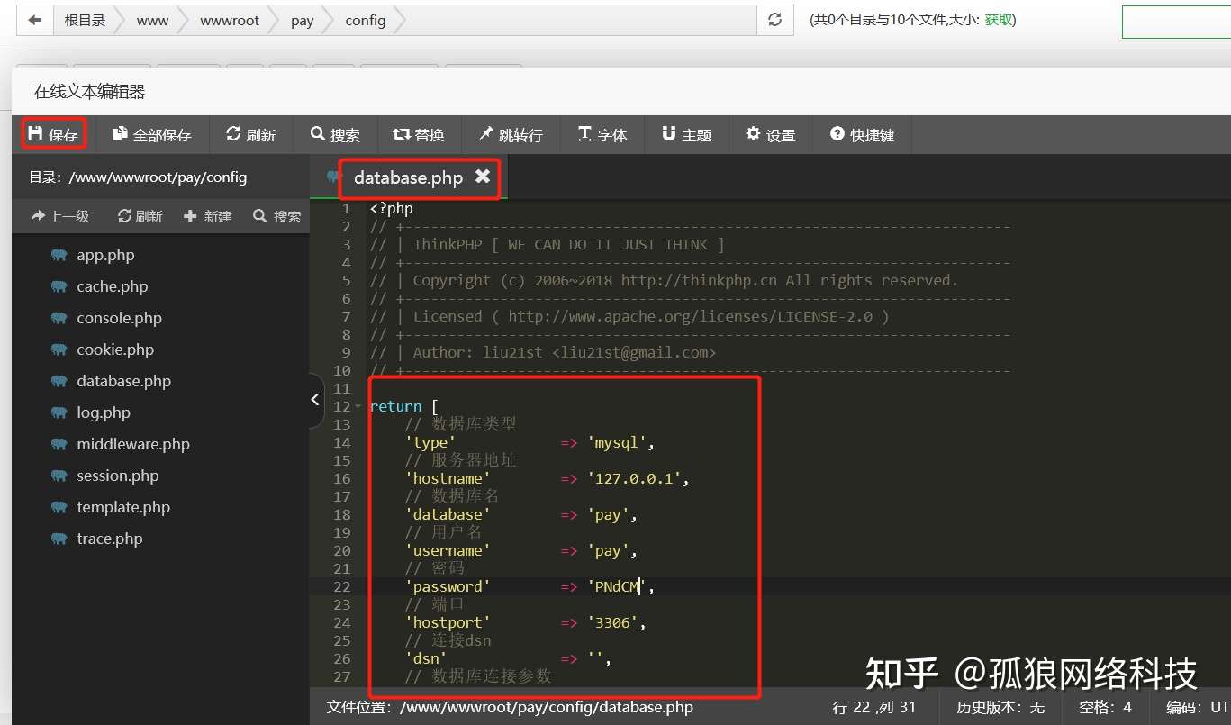 数据虽然导入进数据库 但还需要 在php文件中配置数据库 连接信息,不然网站无法连接操作数据库。在站点下找到 config 目录 打开里面的 database.php文件,修改里面的 库名、用户名、密码 这些东西都在数据库管理中有 修改后记住保存。