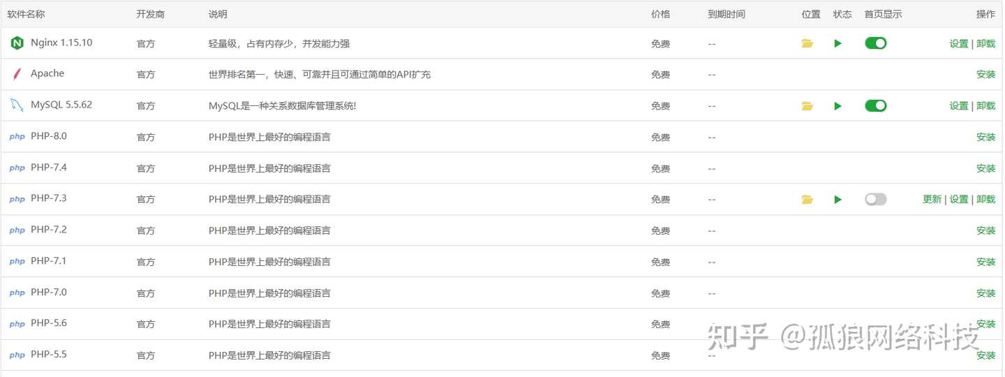 先来说一说我服务器的环境配置,分别在宝塔软件商店中安装 Nginx + php +mysql。PHP 的版本尽量在 7.0 以上 避免版本相差太大出现错误,高版本可以向下兼容 低版本却不能向上兼容。