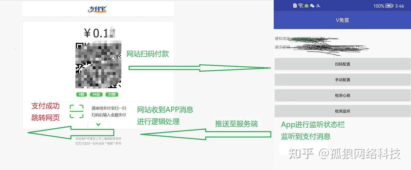 首先我需要在服务器搭建 免签约 的网站 好方便 查看订单 以及 配置,其次就是下载 “免签约监控端app”用于监听状态栏的收款信息。如果APP收到支付宝 或者 微信的支付消息,APP就会向“网站支付页面”发送 支付完成的消息。