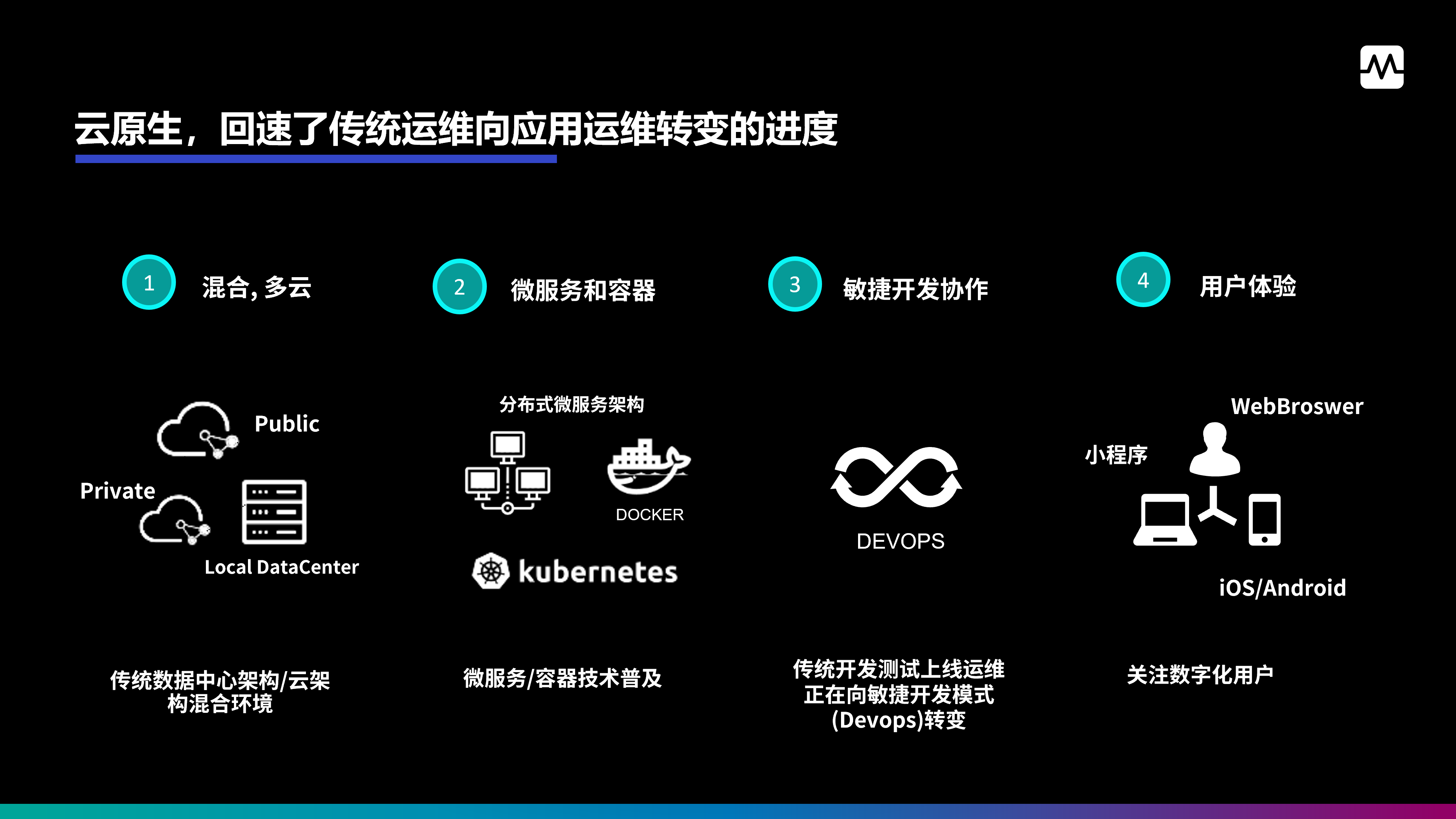 目前来说,我们处在向智能化运维转型的阶段。现在需要做的是让数字化运维、IT运维变得更轻、效率更快、成本的支出更少。运维团队的精力需要集中在企业业务本身,业务才是运维人员所需要关注的重点问题。这些都会带来对智能运维的需求。