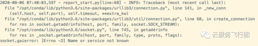 因此可以确认应用日志中的报错是域名解析失败导致的。