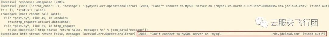 Finally,此时在应用pod内测试可以telnet通云数据库的3306端口。客户的应用调用也终于可以成功返回结果。