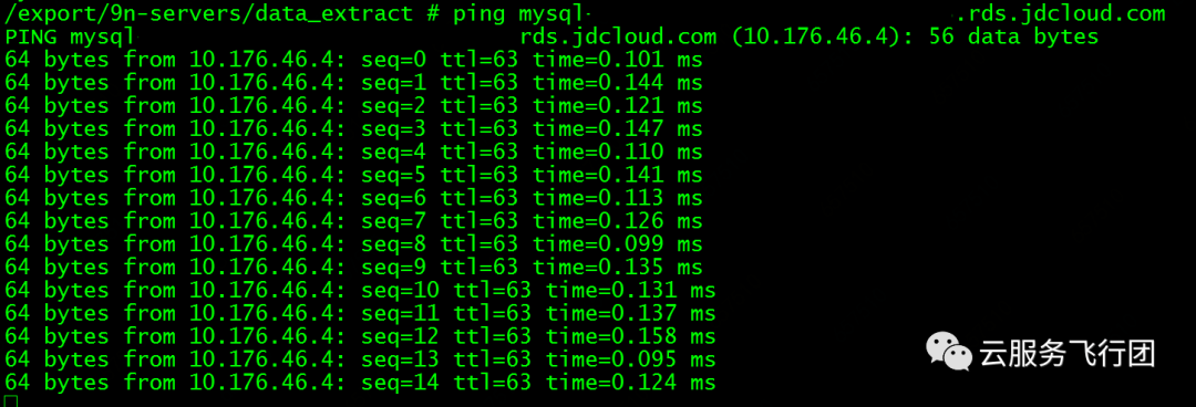 分析应用调用返回慢的问题,一是着眼于应用流程的各个环节,如客户端,服务端对业务请求的处理时间,另外一个就是排查数据传输链路是否有延迟。在客户的场景下,就是确认pod和云数据库在处理请求上是否有瓶颈,还有就是pod到云数据库之间的网络传输是否有延迟。在pod内ping云数据库IP,没有超时丢包,延迟很低。