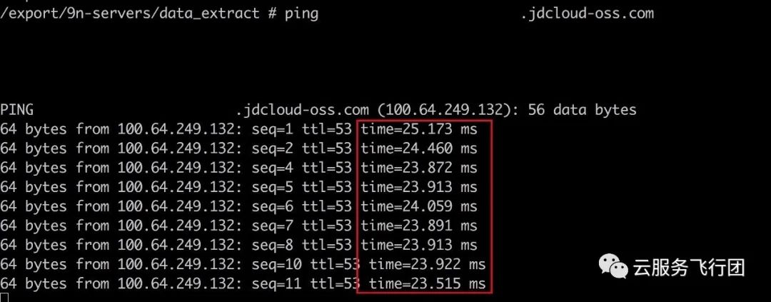 我们在pod内测试ping 100.64.249.132,延时非常感人。