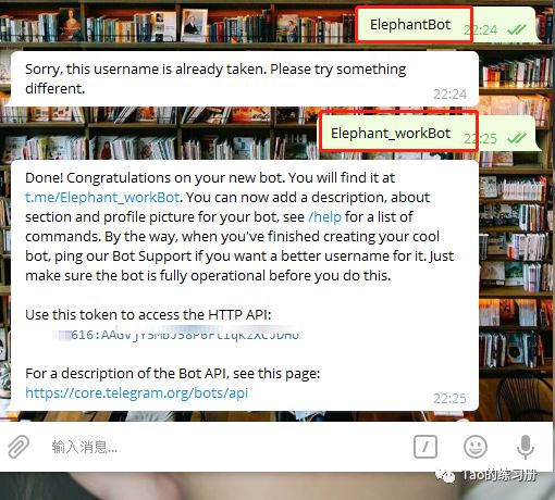 如图就是创建了自己的机器人,他会给你一个token ,有了这个我们就可以远程访问这个机器人,从而创造复杂的功能,就相当于微信小程序一样,比如创建一个聊天复读机机器人,你输入什么内容,机器人就回复你什么内容。(这个内容下次再详细介绍)