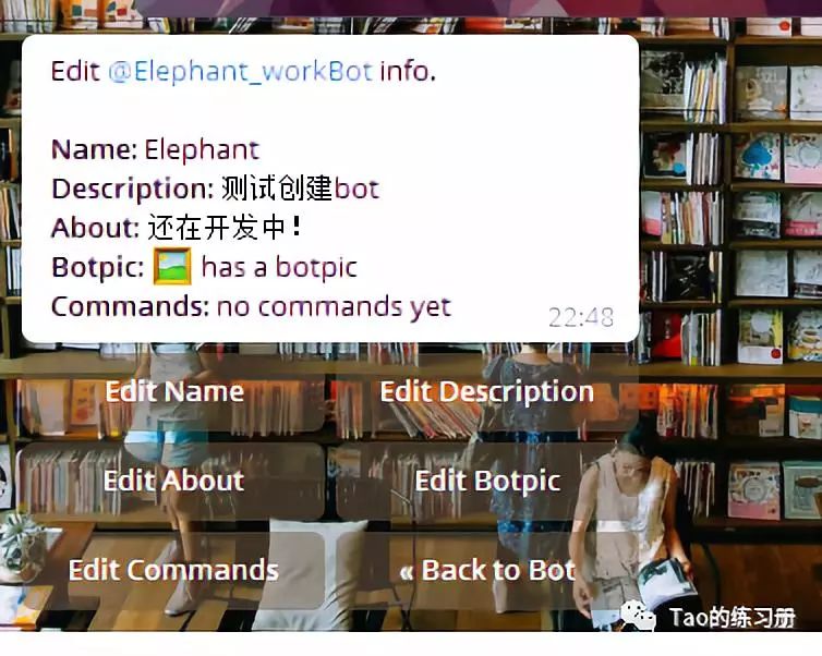 修改你的机器人的名称,描述,关于,机器人头像,创建命令(如图我已经修改好了)