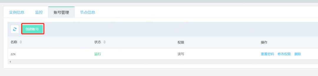 点击进入实例,可以看到产品提供的功能列表,目前支持查看实例信息,监控(空间/连接数/QPS等),账号管理,节点信息(zk各节点、shard各节点的cpu/内存/空间信息)