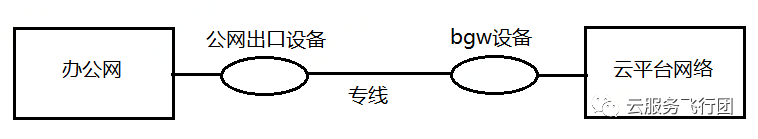了解完两端的网络架构后我们来选择打通方式。通常将云下网络和云上网络打通,有专线产品连接方式,或者用户自建VPN连接方式。专线产品连接需要布设从客户办公网到云上机房的网络专线,然后在客户办公网侧的网络出口设备和云上网络侧的bgw边界网关配置到彼此对端的路由。如下图所示: