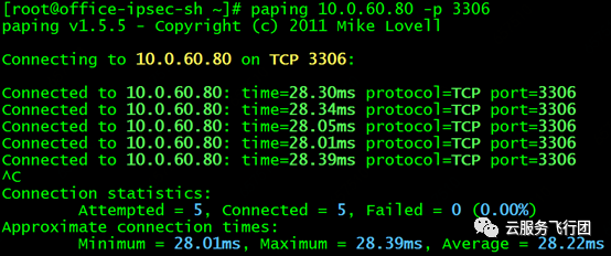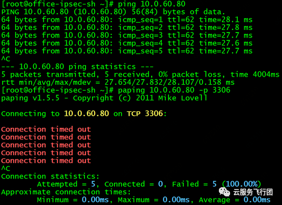 在上海云主机直接ping service的clusterIP,没有问题。但是paping 3306端口的时候,居然不通了!