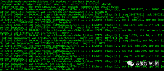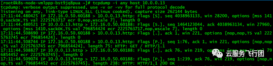 可以看到这次确实抓到了10.0.0.13和172.16.0.50交互的数据包,为了便于分析,我们使用命令tcpdump -i any host 10.0.0.13 -w tmp/dst-node-pod.cap将包输出为cap文件。