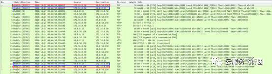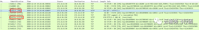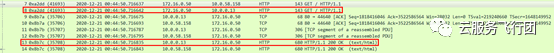 各位童鞋可能会有疑惑,为什么抓取的是10.0.58.158,但抓包中显示的目的端是该节点名?实际上这与service的实现机制有关。在集群中创建service后,集群网络组件会在各个节点上都选取一个随机端口进行监听,然后在节点的iptables中配置转发规则,凡是在节点内请求service IP均转发至该随机端口,然后由集群网络组件进行处理。所以在节点内访问service时,实际访问的是节点上的某个端口。如果将抓包导出为cap文件,可以看到请求的目的IP仍然是10.0.58.158,如图所示: