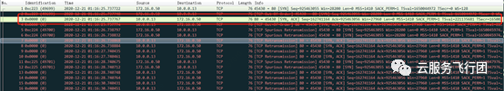 回到问题本身,在转发节点上抓取service相关包,发现service没有像转发到pod所在节点时给客户端回包。我们再执行命令tcpdump -i any host 172.16.0.50 -w tmp/fwd-node-client.cap以客户端维度抓包,包内容如下: