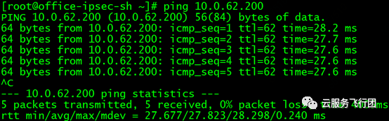 接下来激动人心的时刻到来了,我们将访问service的路由指向node B,然后在上海客户端上执行paping 10.0.58.158 -p 80观察测试结果(期待地搓手手):