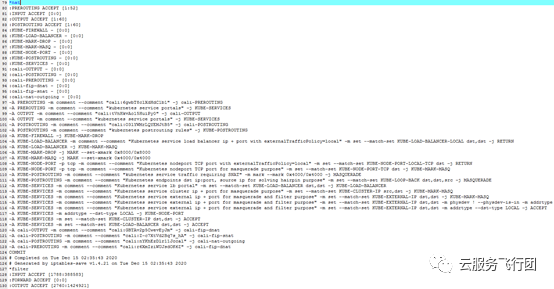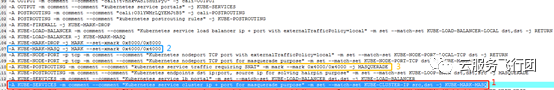 可以看到系统创建了近千条iptables规则,大多数与k8s有关。我们重点关注上图中的nat类型规则,发现了有如下几条引起了我们的注意: