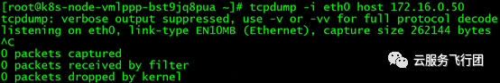 首先探究疑问1场景,我们在k8s-node-A上执行命令抓取与上海云主机172.16.0.50的包,命令如下: