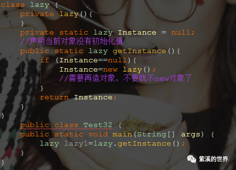 懒汉式:可以理解这人特懒,他只是洗下碗但是不准备,啥时候吃饭啥时候弄吃饭工具(new对象)。