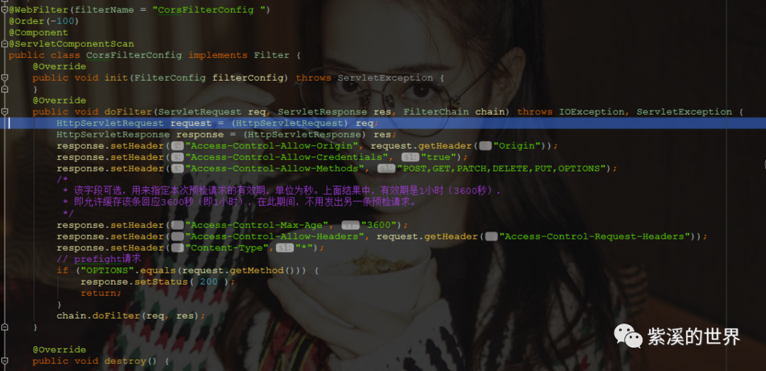 我们将需要预检请求的方法 "OPTIONS".equals(request.getMethod()) 放行,同时把 Access-Control-Allow-Headers 和 Access-Control-Allow-Origin 设置成请求的 HTTP 头信息,这样可以保证都放行。实际的配置就是如下: