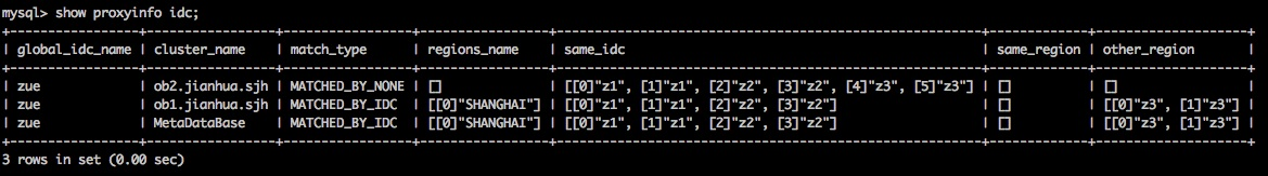 obclient> SHOW PROXYINFO IDC;返回结果如下所示: