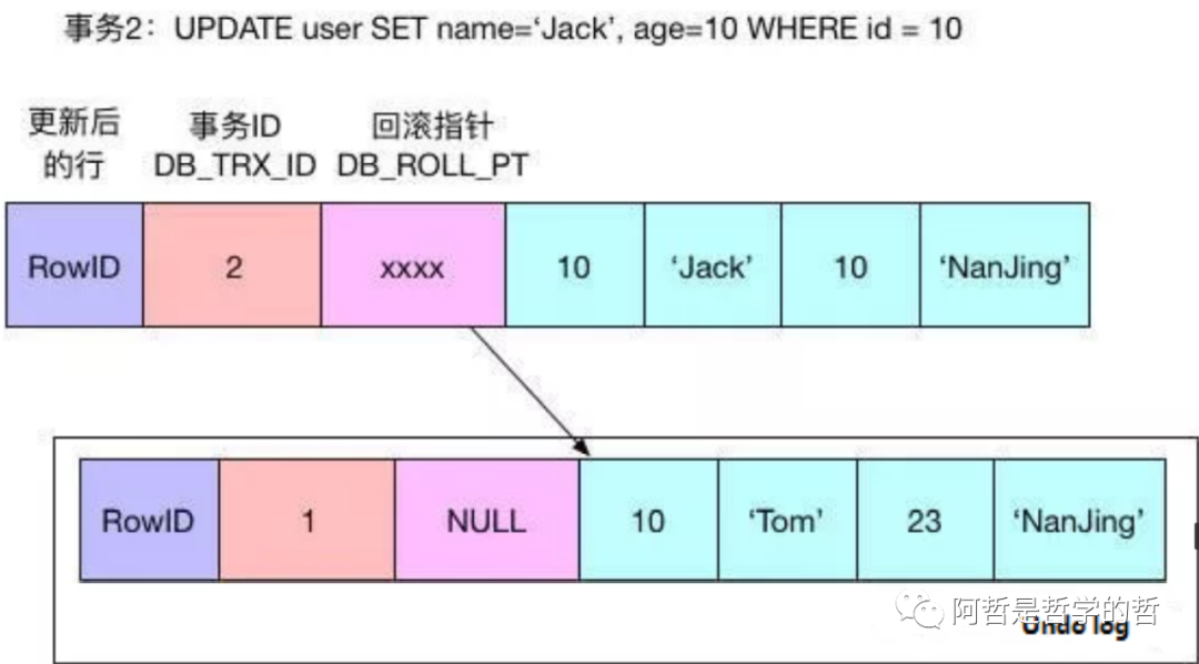 MVCC 的实现, 通过undo log 来回溯本次事物可见的版本.