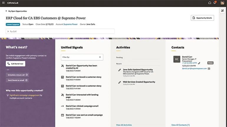 Oracle Fusion 销售能够提供