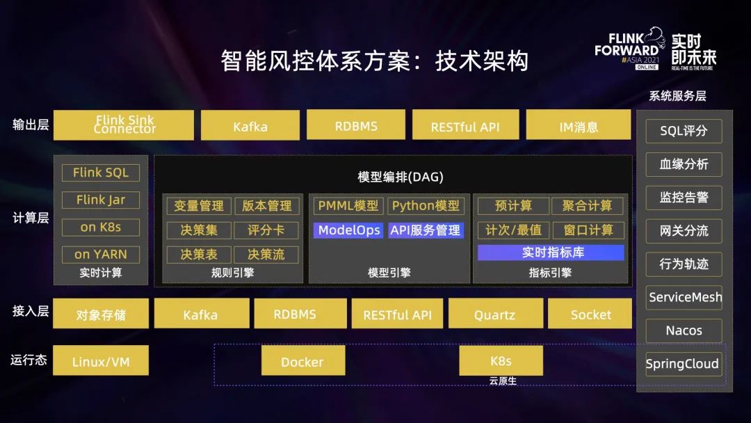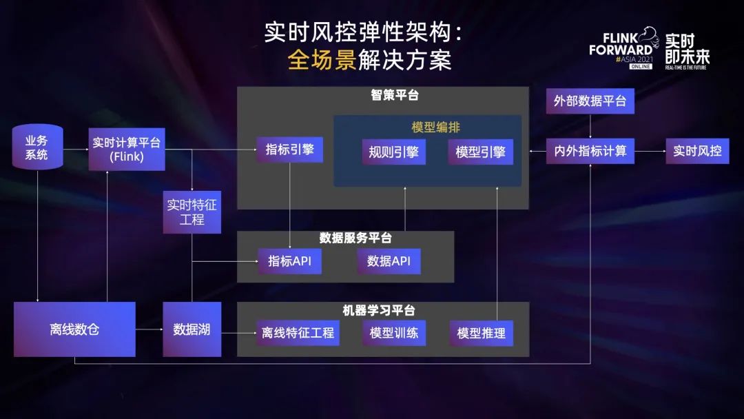 新的风控体系首先实现了实时化,通过流计算、内存计算等技术提高数据处理的时效性,做到了及时识别跨系统的风险行为,并通过云原生、资源弹性等技术提高系统的高并发能力。在提升硬实力的同时更注重智能化,将基于概率的机器学习模型与专家规则结合,充分释放大数据价值,避免专家规则经验盲区。此外,通过打造平台化的产品,形成不同场景的快速支撑能力和完善的风控体系。