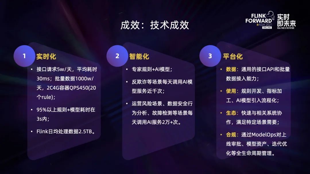 近三年我们经历了对实时计算的探索、尝试和平台化建设,并将实时计算技术应用至反欺诈、事件驱动、实时 OLAP 等多种场景,2021 年底任务数量和日均处理数据量都提升数倍。在风控方面,经历了从引入国外决策系统到自研决策平台的转变,2021 年自研决策平台已经开始承接新需求和部分国外决策系统迁移而来的规则模型。