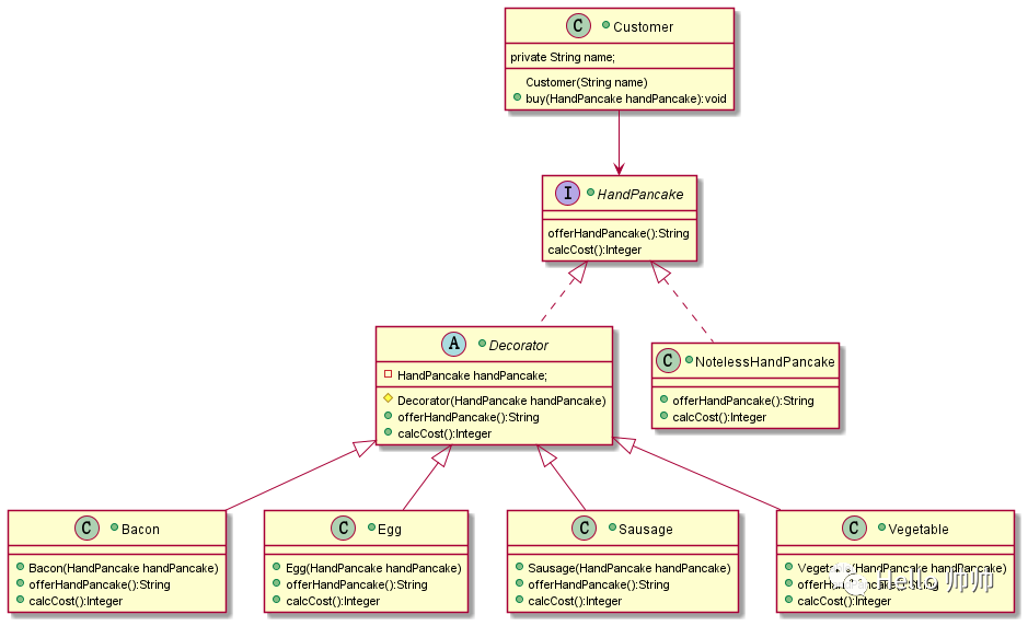 customerC.buy(new Bacon(new Sausage(new NotelessHandPancake())));
