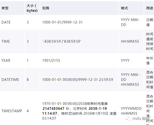 日期和时间类型