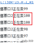 卖出重复票的原因:线程二在执行完售出后,执行 ticket--前(此时票已售出,但票数没有减少),线程一开始执行,并且顺利售出了一张票,导致同时售出了第100张票。