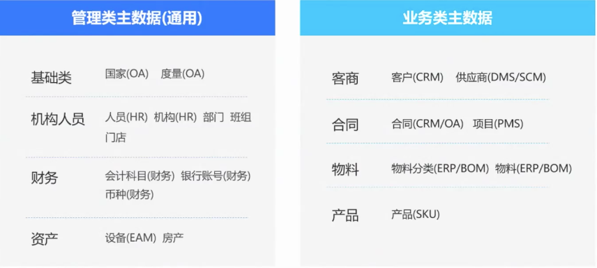 其实主数据理解起来非常简单,比如记账,“谁,在哪个店里,买了什么东西,一共多少钱”。这句话里所有非数值的,都是主数据,买东西的人、卖东西的店、产生交易的商品等等都是主数据。常见的主数据包括:供应商、客户、物料、人员、部门、项目等。