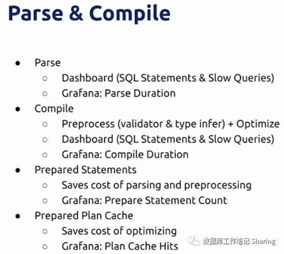 1. parse的耗时(一般只有bash insert 时耗时高)、Compile的耗时(包括预处理和优化,一般在复杂查询时慢)从DashBoard对应面板可以看到