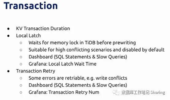 1. 事务在Tikv的耗时高主要体现在 Local Latch 和 事务重试