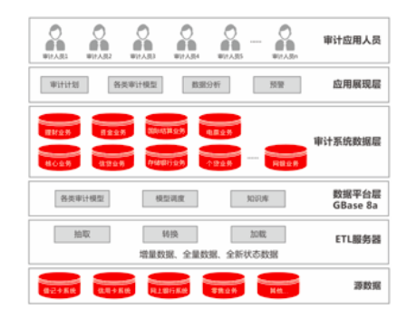 l 保障复杂审计业务运行:发挥GBase 8a MPP Cluster集群数据库在列存储、智能索引和大规模并行计算技术上的突出优势,实现了审计相关的各类海量数据的汇总、挖掘、分析,高效地完成各种复杂的审计模型,提前发现并预测风险隐患,保障银行业务的健康发展;