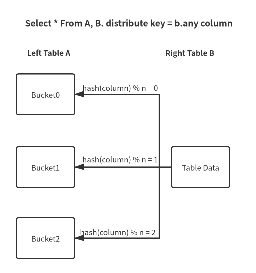bucket shuffle join:当join key是分桶key,并且只涉及到一个分区时,就会优先采用bucket shuffle join算法。由于分桶本身就代表了数据的一种切分方式,所以可以利用这一特点,只需将右表对左表的分桶数hash取模,这样只需网络传输一份右表数据,极大减少了数据的网络传输,如图10所示。
