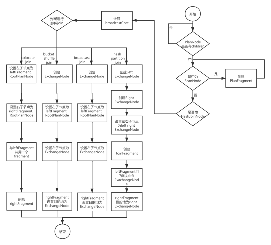 · 如果使用colocate join,由于join操作都在本地,就不需要拆分。设置HashJoinNode的左子节点为leftFragment的RootPlanNode,右子节点为rightFragment的RootPlanNode,与leftFragment共用一个PlanFragment,删除掉rightFragment。