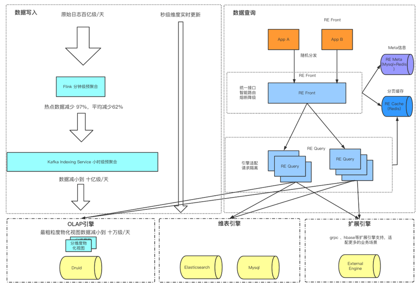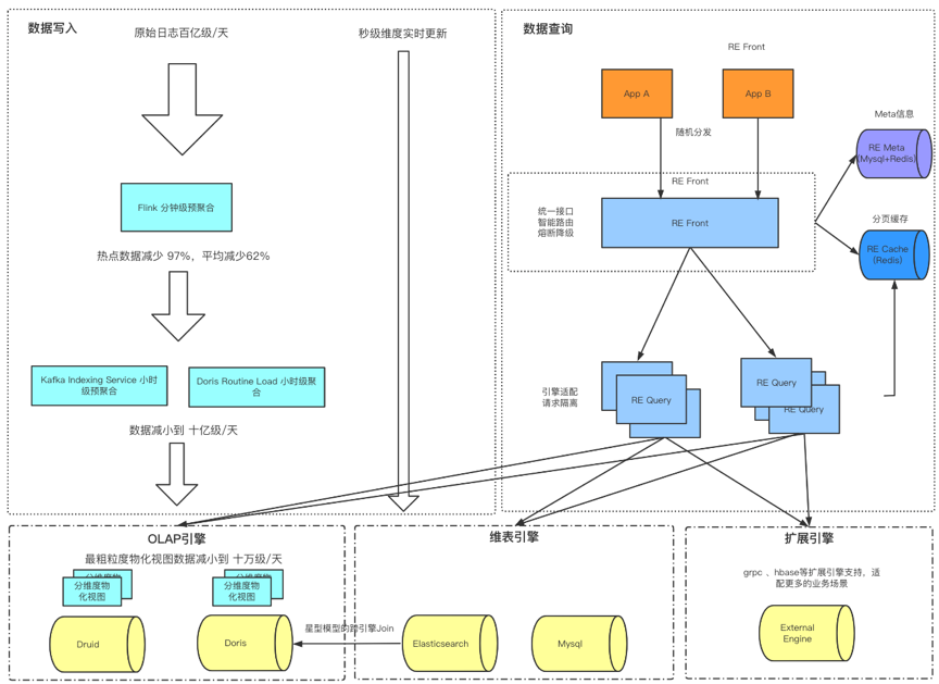 REQuery 为查询执行层,分组部署,为不同的业务场景提供物理隔离。核心职能为:多引擎适配、多集群路由调度、查询优化、MEM Join、结果分页cache等。