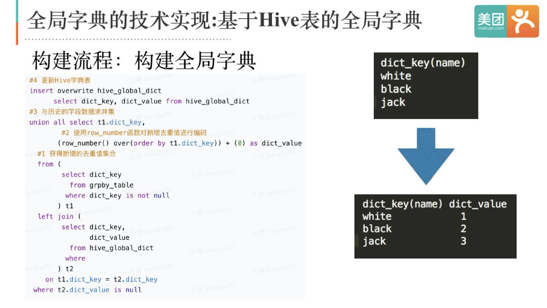 第一个是基于Trie树的全局字典,第二种是基于Hive表的全局字典。今天我们主要讲的就是基于Hive表的全局字典。