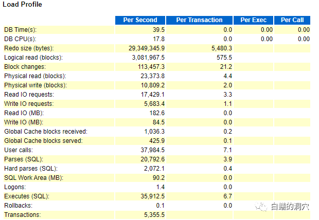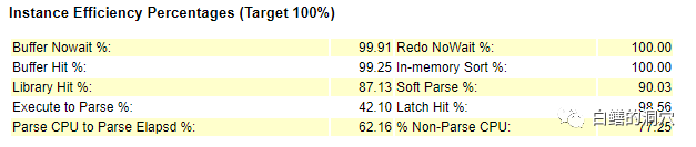 从上面的数据来看,LIBRARY HIT,LATCH HIT,SOFT PARSE的比例提升应该也是有效的。后续可以对这些做针对性的优化。