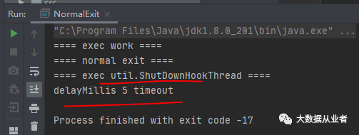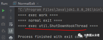 //添加钩子Runtime.getRuntime().addShutdownHook(new ShutDownHookThread(0));//业务工作work();//正常退出System.out.println("==== normal exit ====");