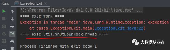 //添加钩子Runtime.getRuntime().addShutdownHook(new ShutDownHookThread(0));//业务工作work();//异常退出throw new RuntimeException("exception");