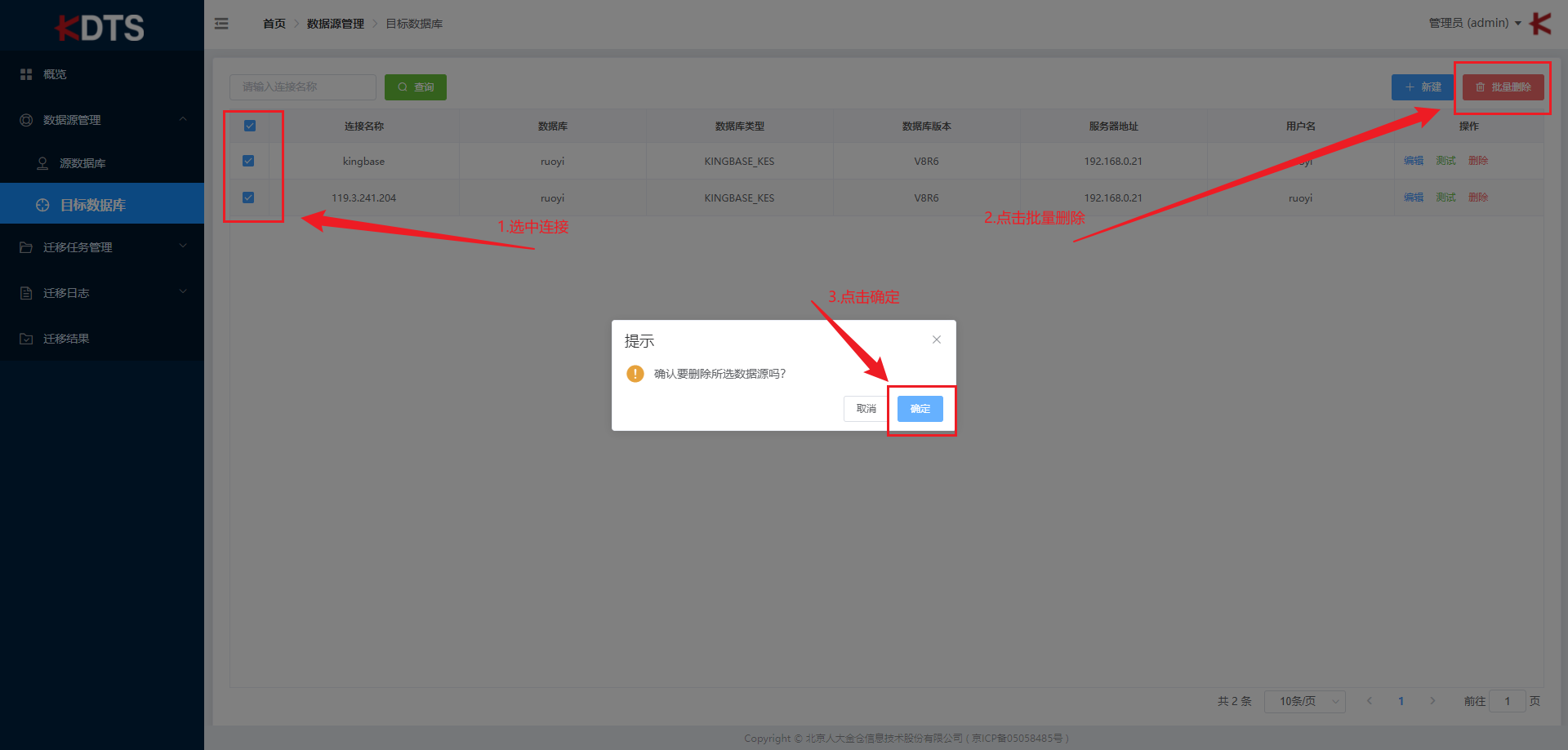 点击 “删除” 可删除此目标数据源连接信息。
