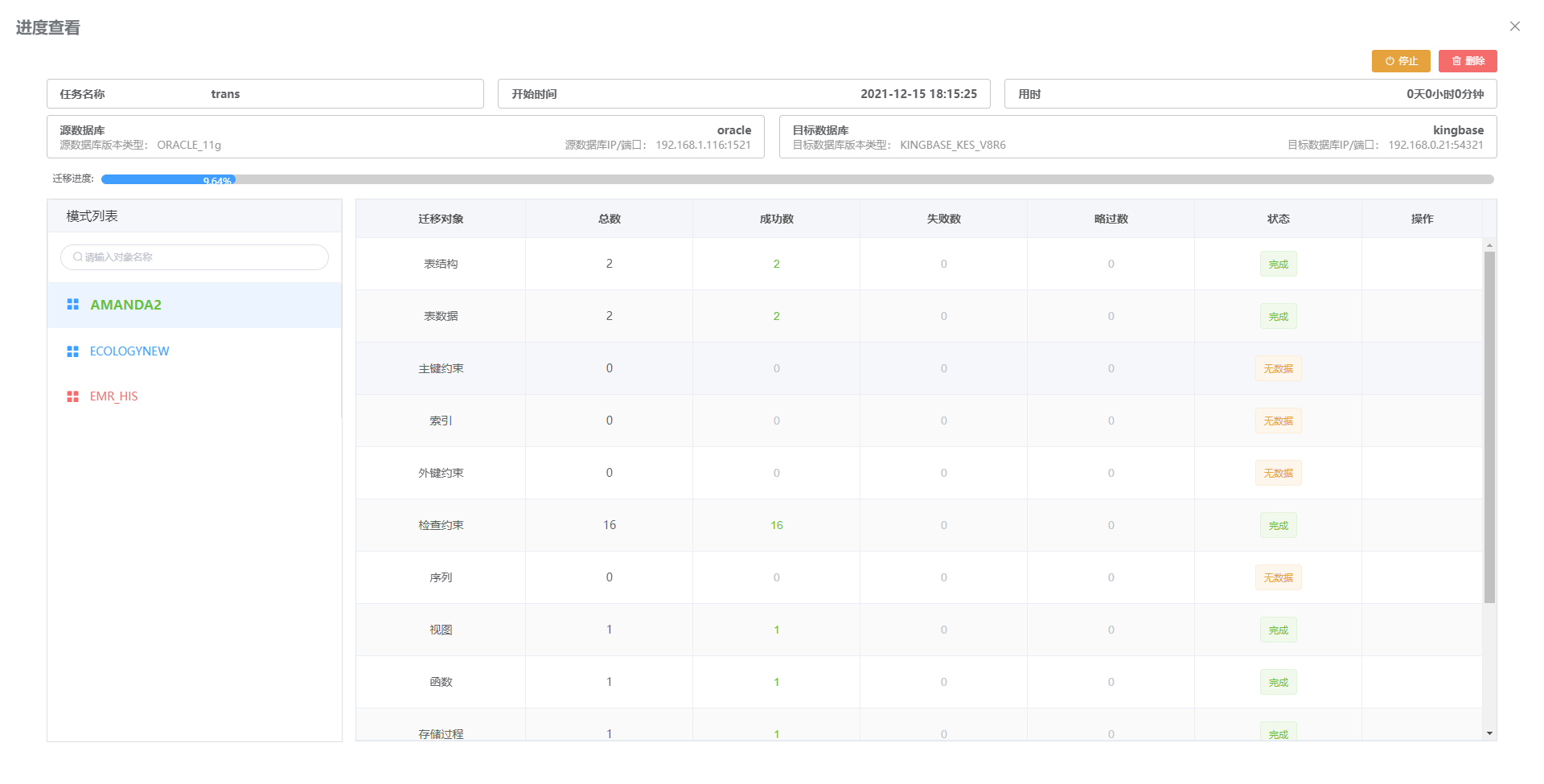 迁移任务管理可以操作或查看迁移的全过程。