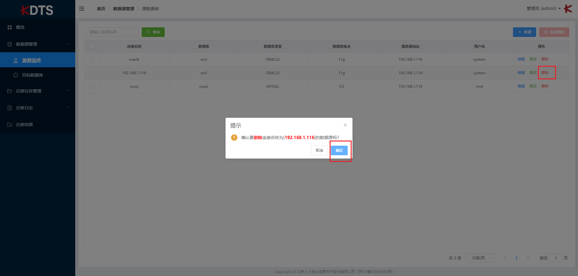 点击 “删除” 按钮可删除此数据源连接信息。