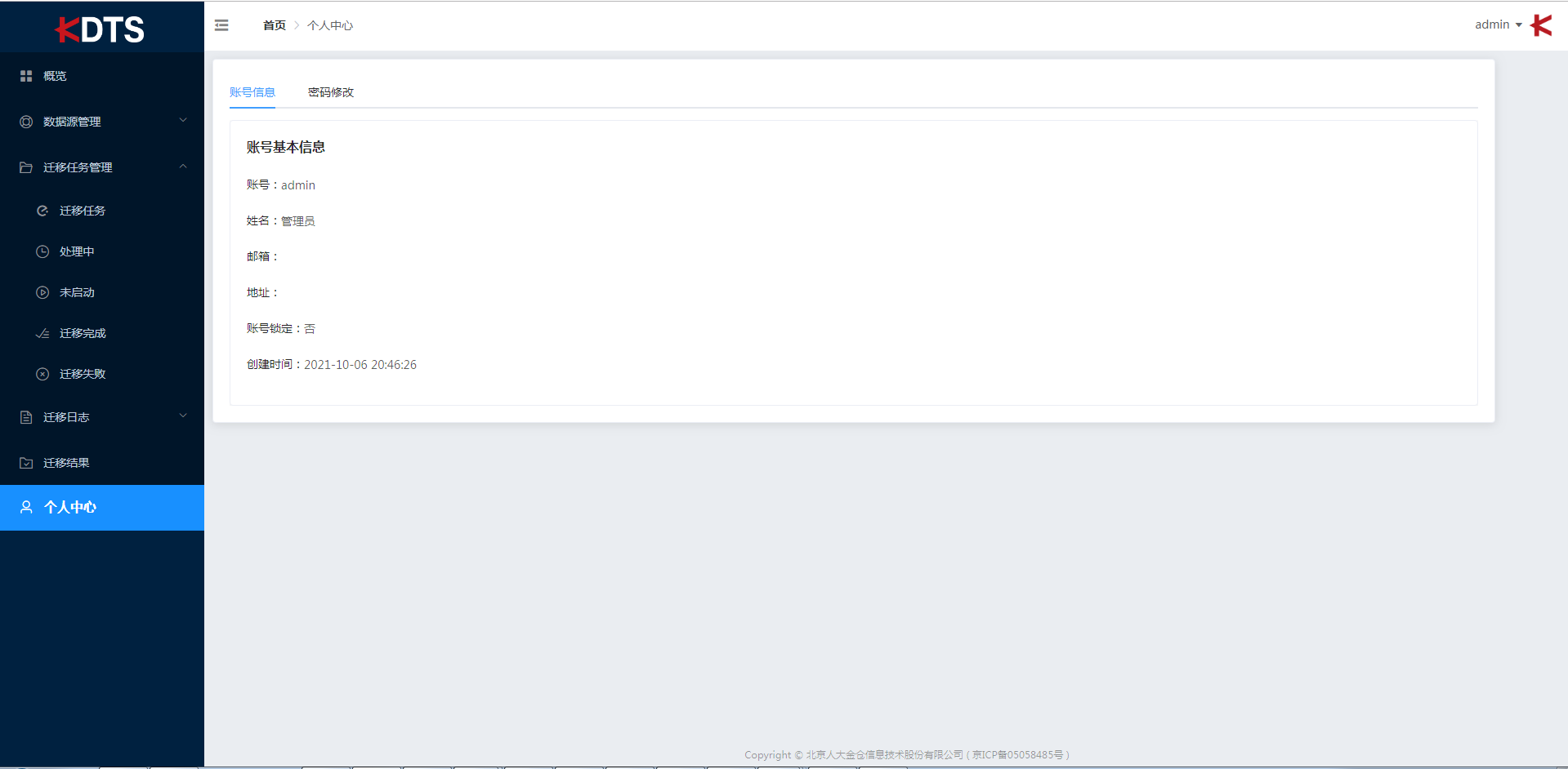 展示账号信息及修改登录密码。